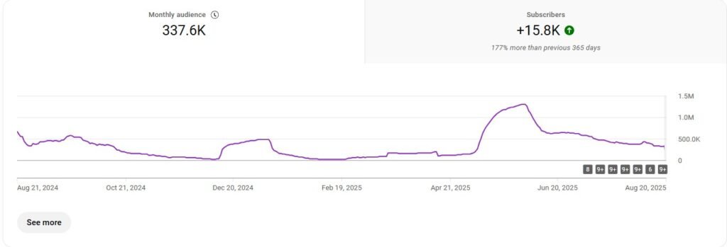 - Peak Monthly Audience: ~1.5M (June 2025)